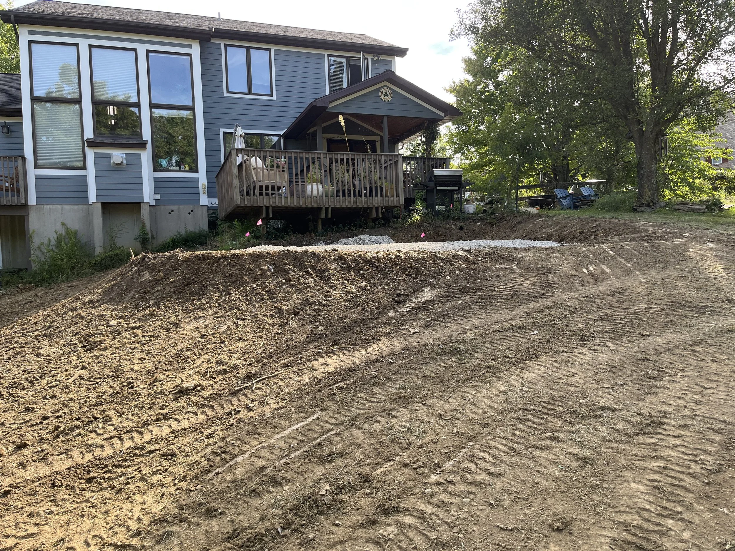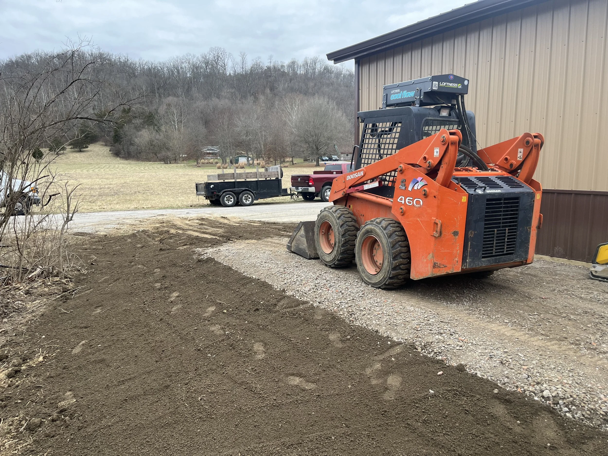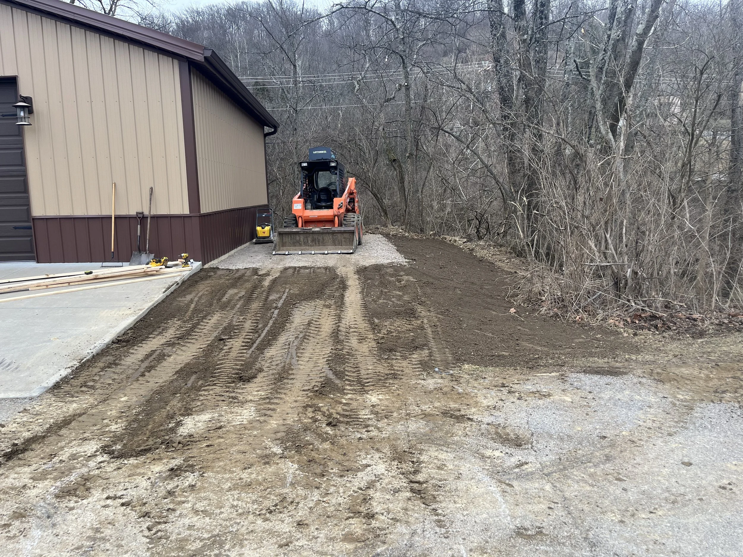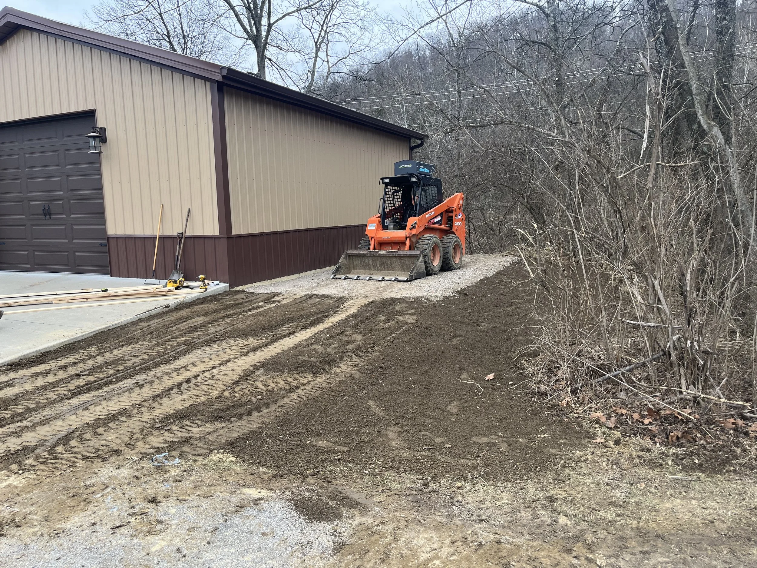 The previous picture with the Doosan in the forest is 180 degrees from this one. I got about to here when I started using a steel track loader on this project.