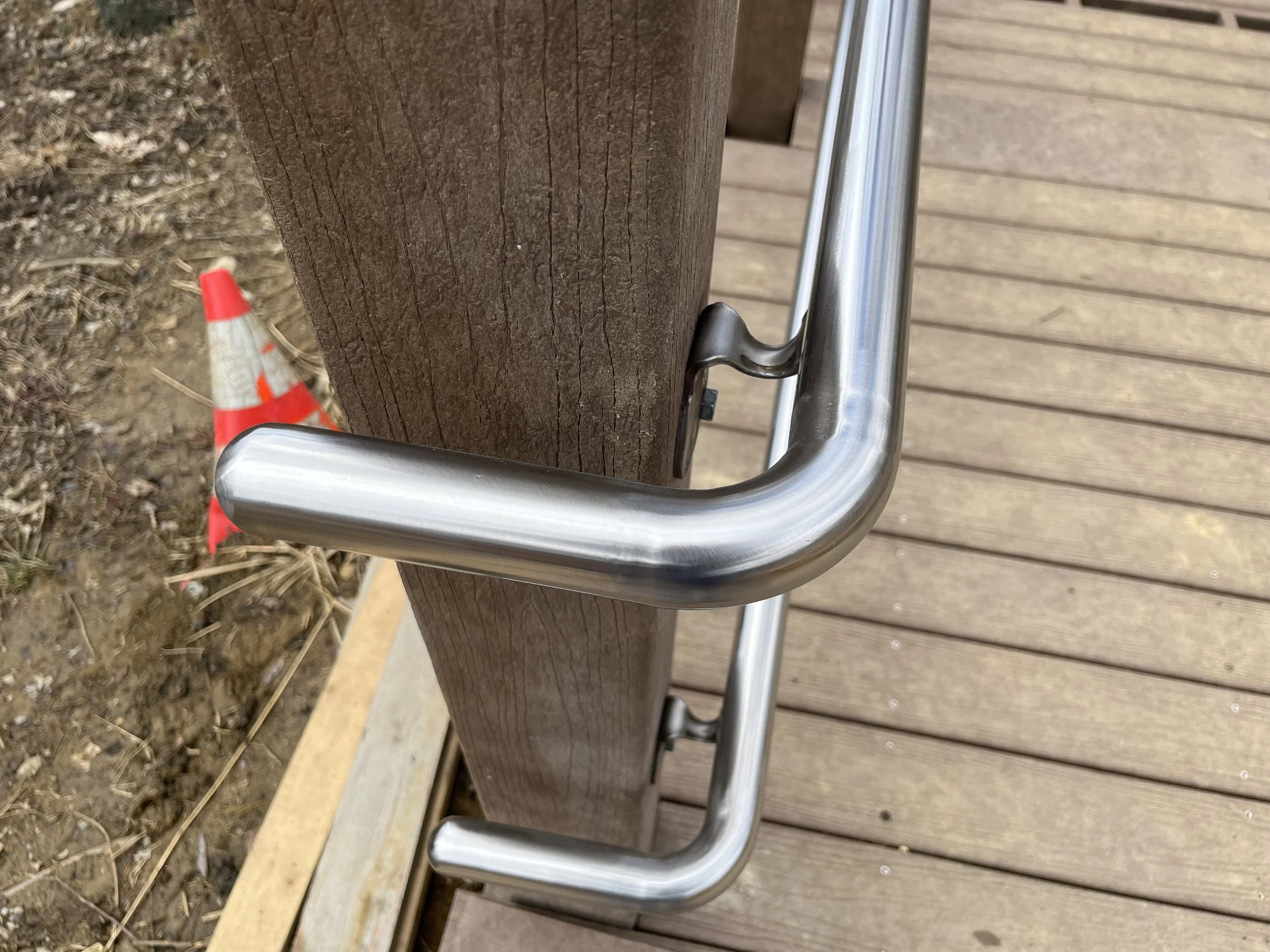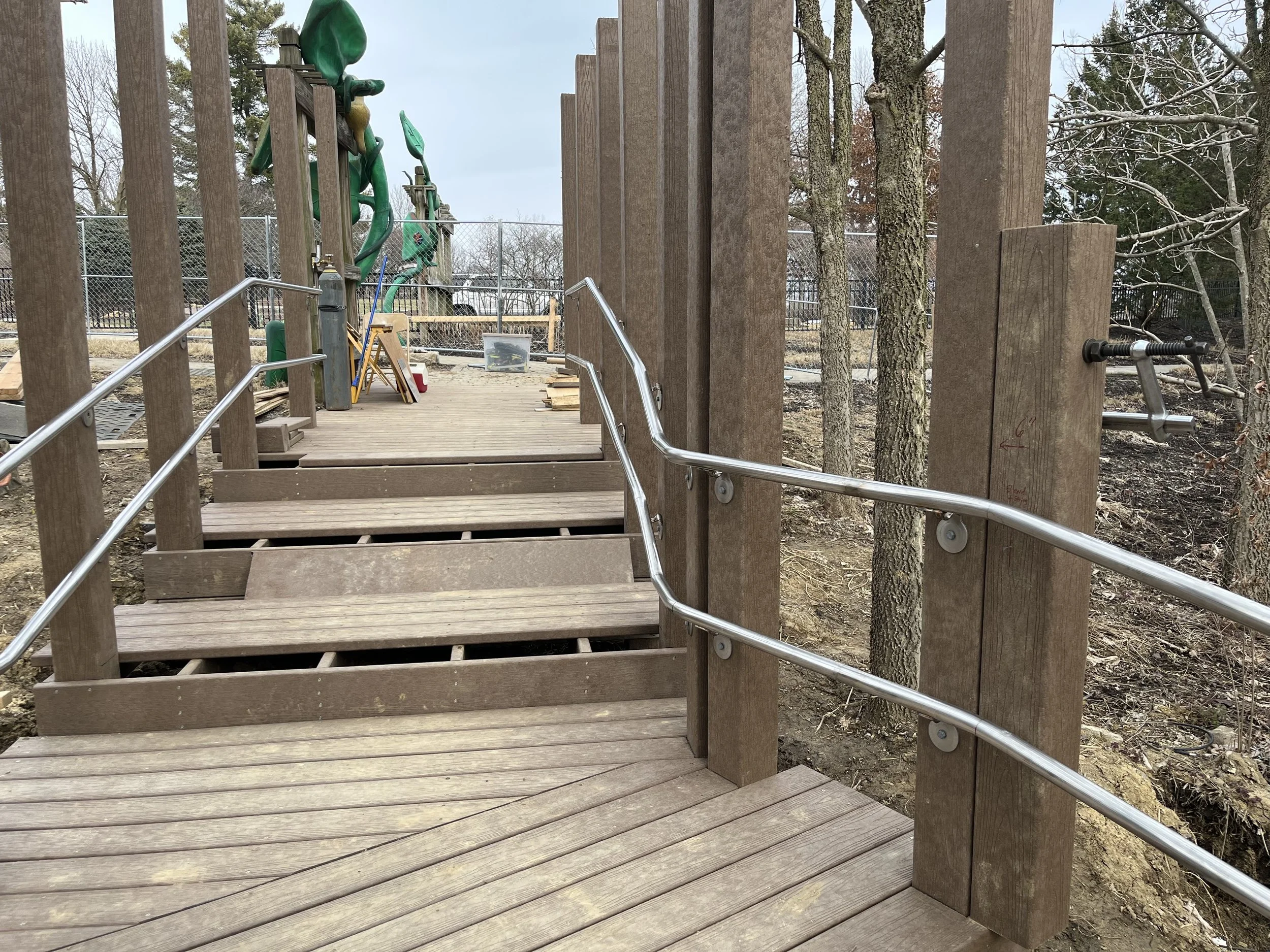 This handrail is made of stainless steel and you can see it in the Highfield Discovery Garden in Glenwood Gardens.