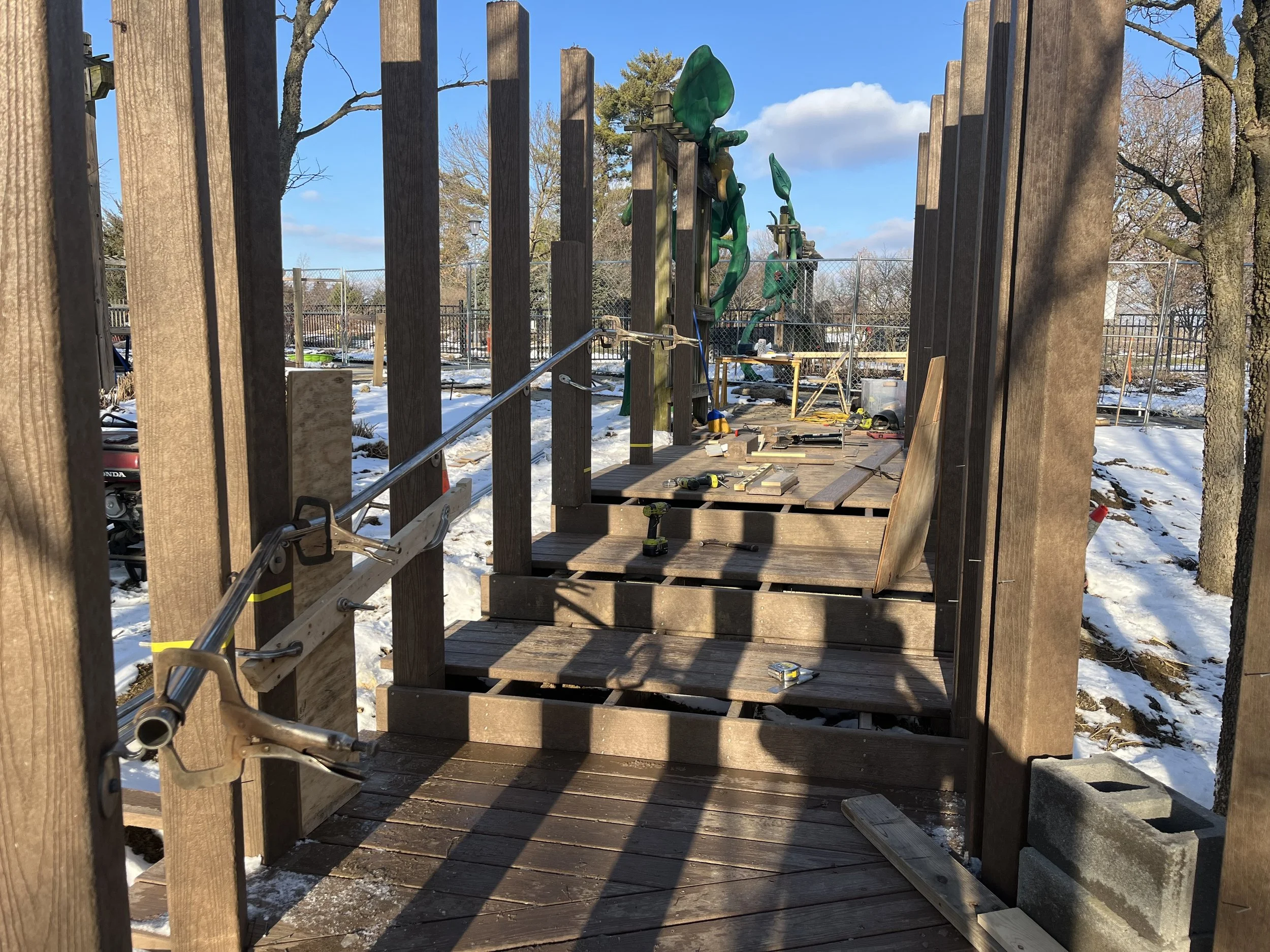 I did all the metal work you see here but I cannot take any credit for the walkway and posts made of artificial wood