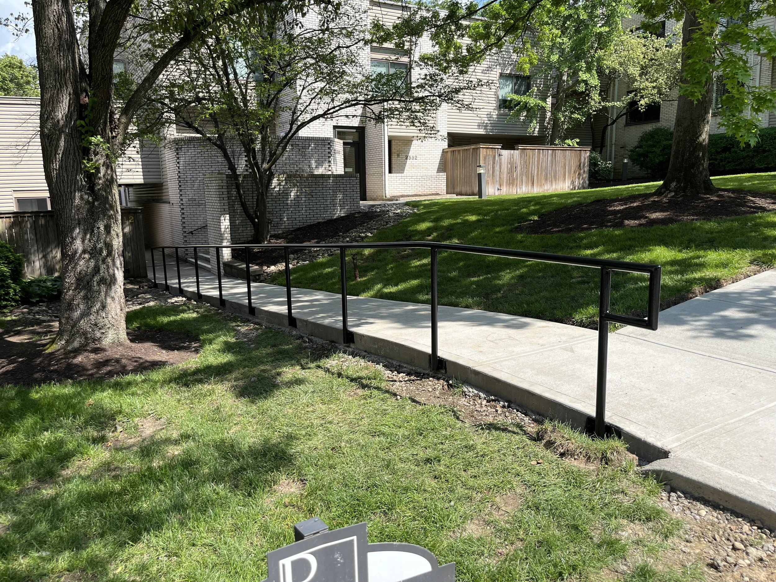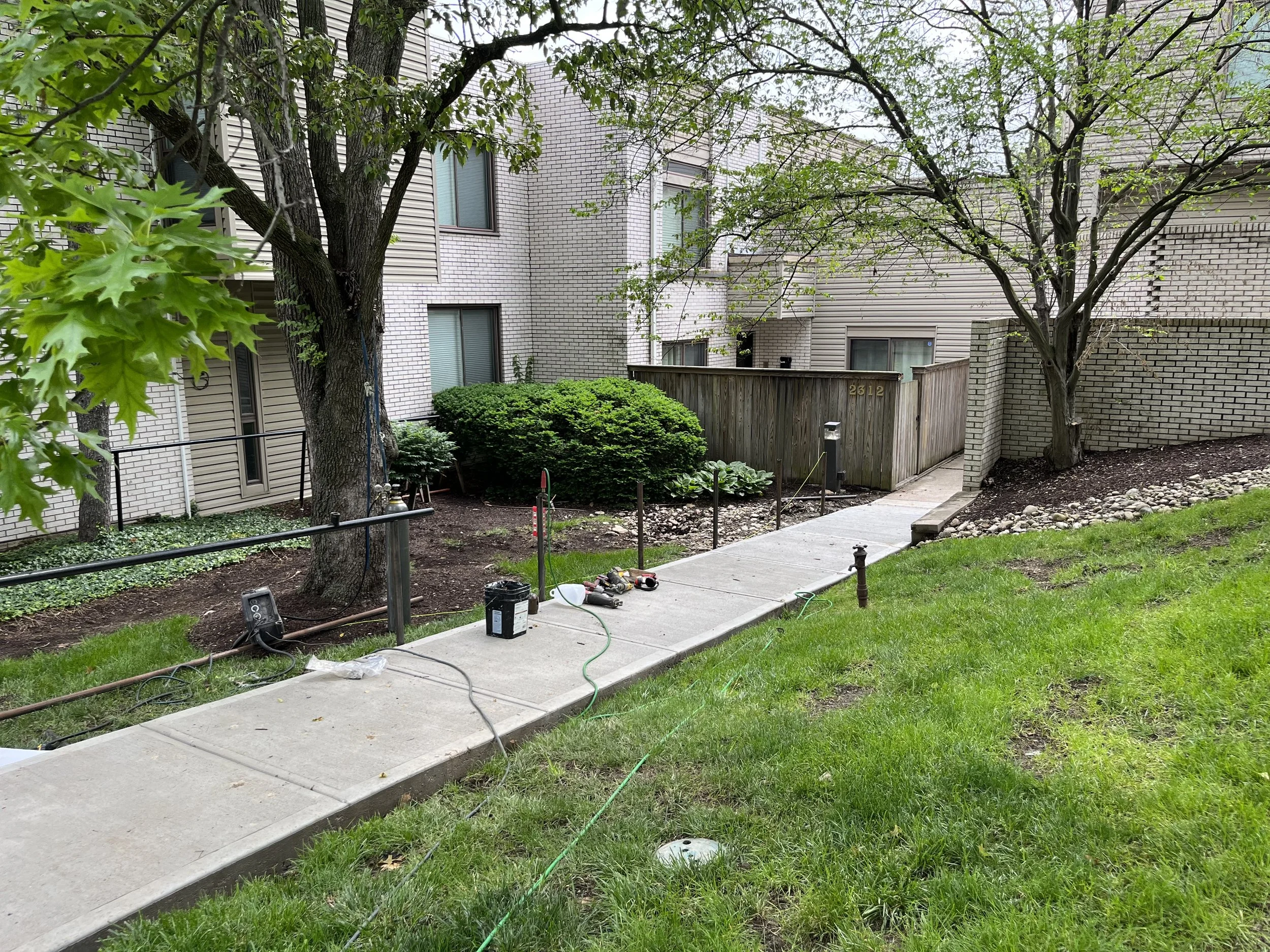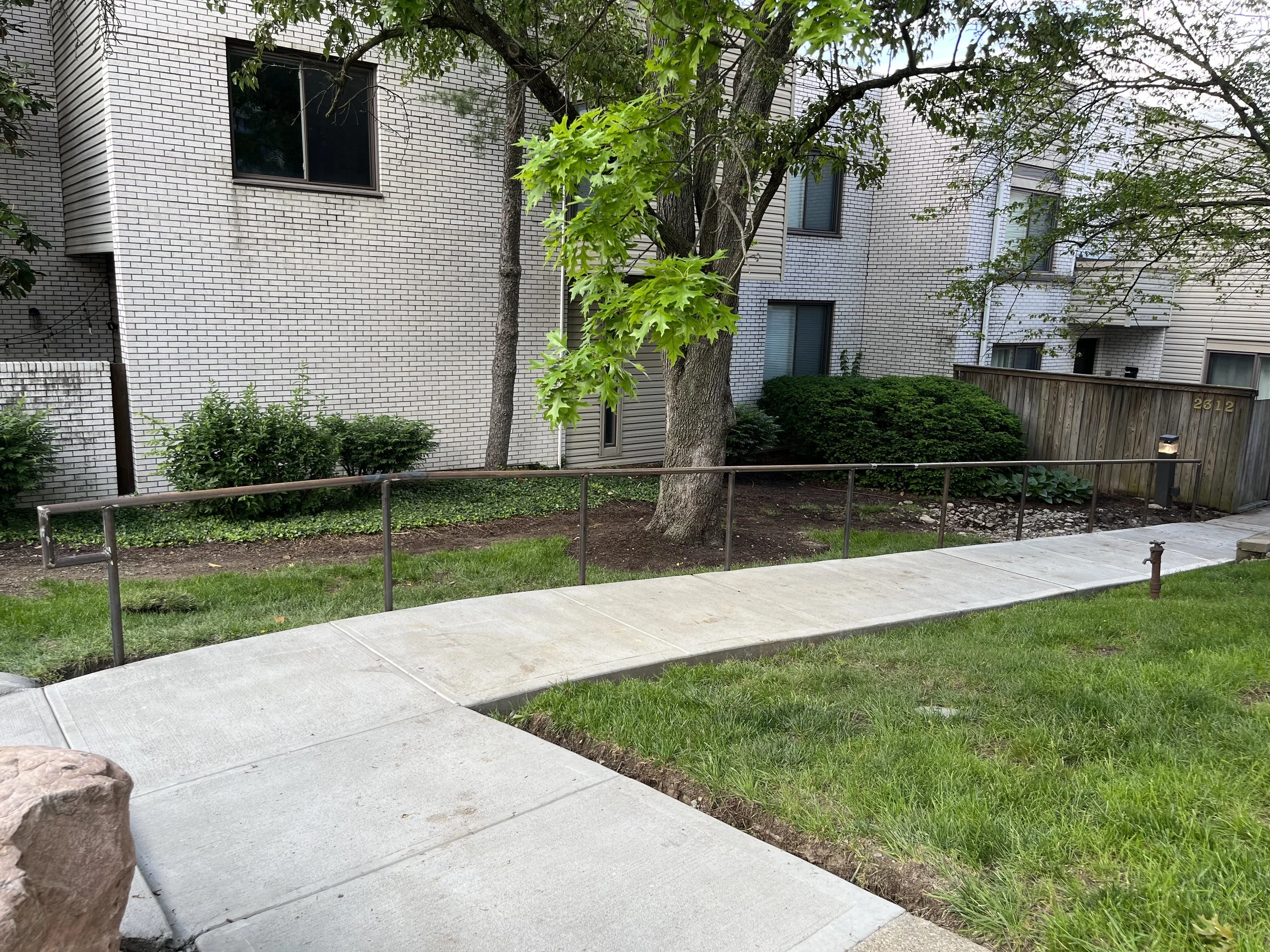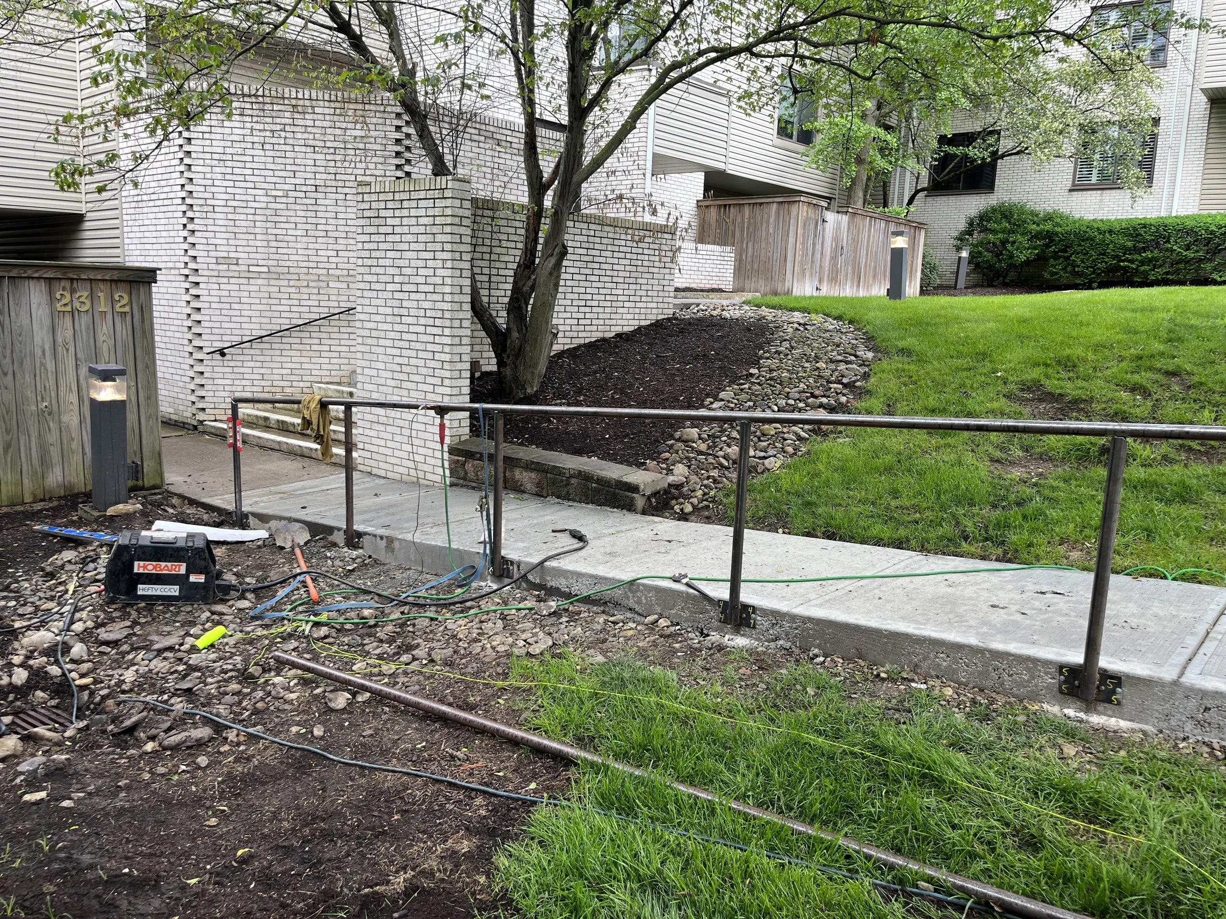 I started by cutting out and drilling all the mounting plates and posts in the shop. The top of the concrete is on a slope and the side of the concrete is not plumb or consistent. After numbering and temporarily mounting the plates I marked a plumb line and used a level on the side of each one to see what direction it was leaning. After taking the plates back off I tacked each post to the top or bottom of the corresponding plate depending on which way the plate was leaning when it was bolted to the concrete. This allowed me to bend Them around during final installation to make them perfectly plumb before fully welding them to the mounting plates.